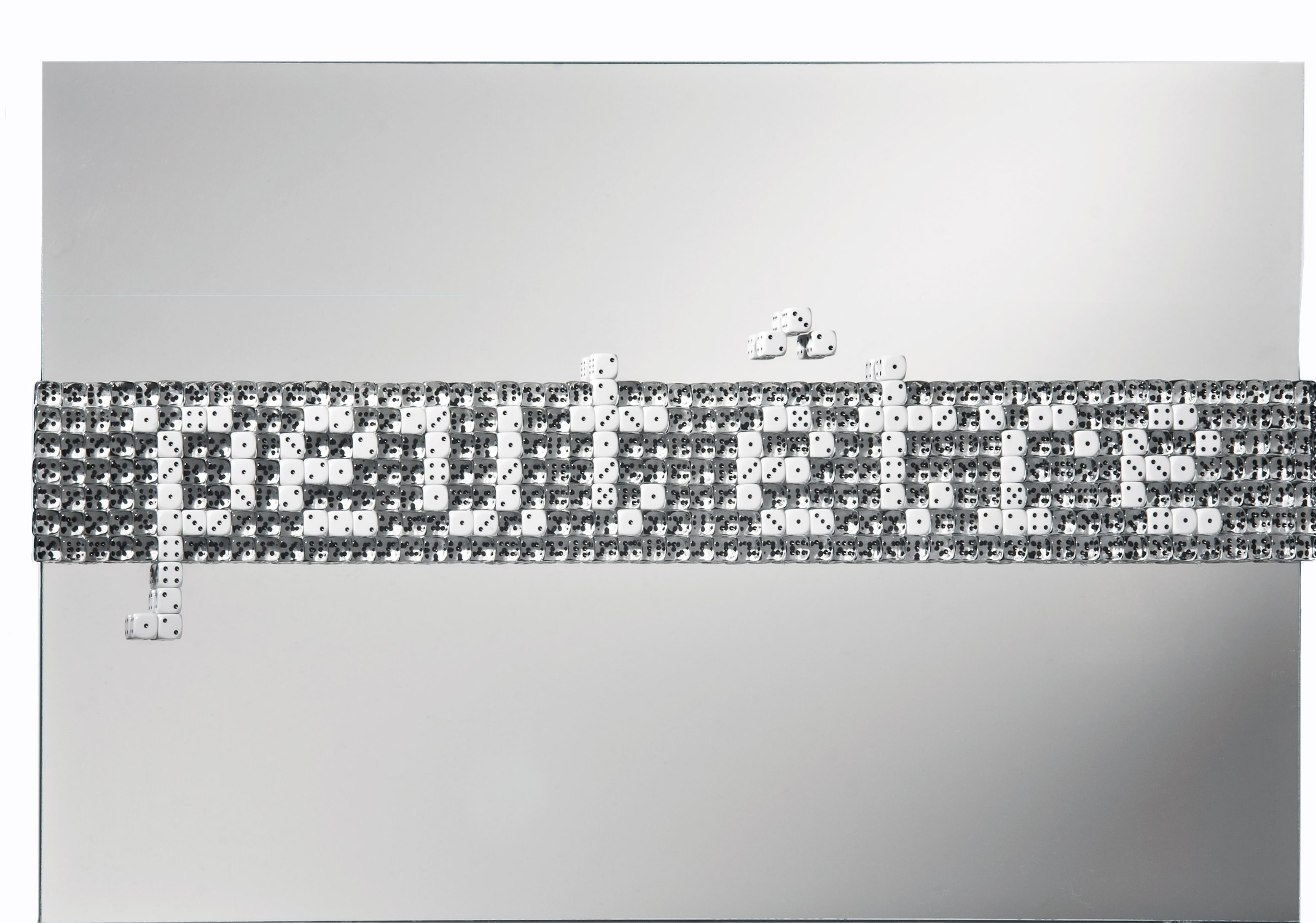 Dadi in resina su plexiglass a specchio, 40x62x2cm