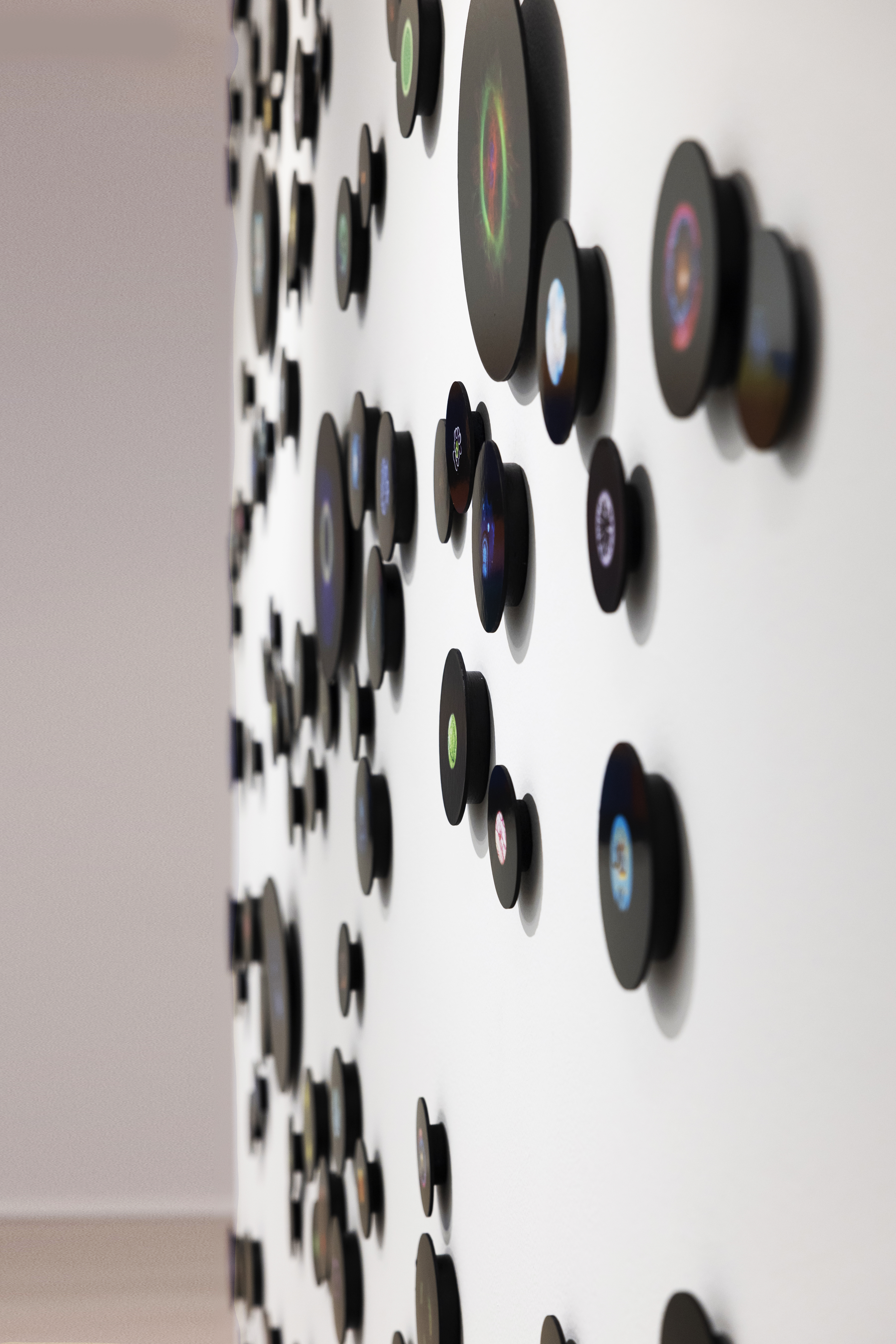 Carta patinata su cartoncino extra white, diametro 33cm/15cm/11cm.
